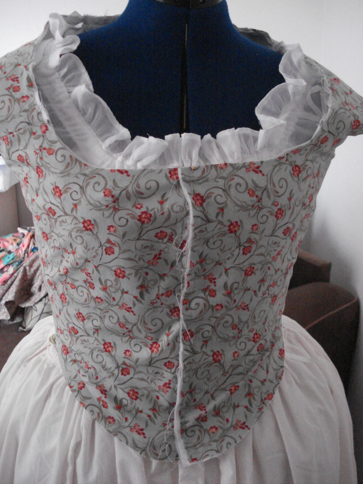 Here are the pics of my latest dress project. I haven't gotten further than the bodice due to issues with adding the sleeve and getting it to fit. Grrrr. I took the bodice through a few levels of pairing down. I didn't care for how high the neckline of the bodice looked on my Polonaise. I don't really think it looked period either when i compared it to other examples I've seen in my new favorite book. Squee! ; ) (pics to follow)