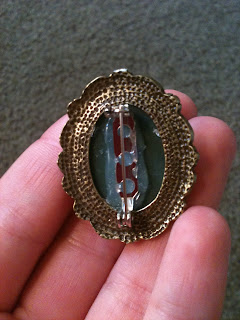 I found this cameo pendant at Hobby Lobby and converted it into a pin for my German Day Dress. That poor project is on the back burner...again. : /